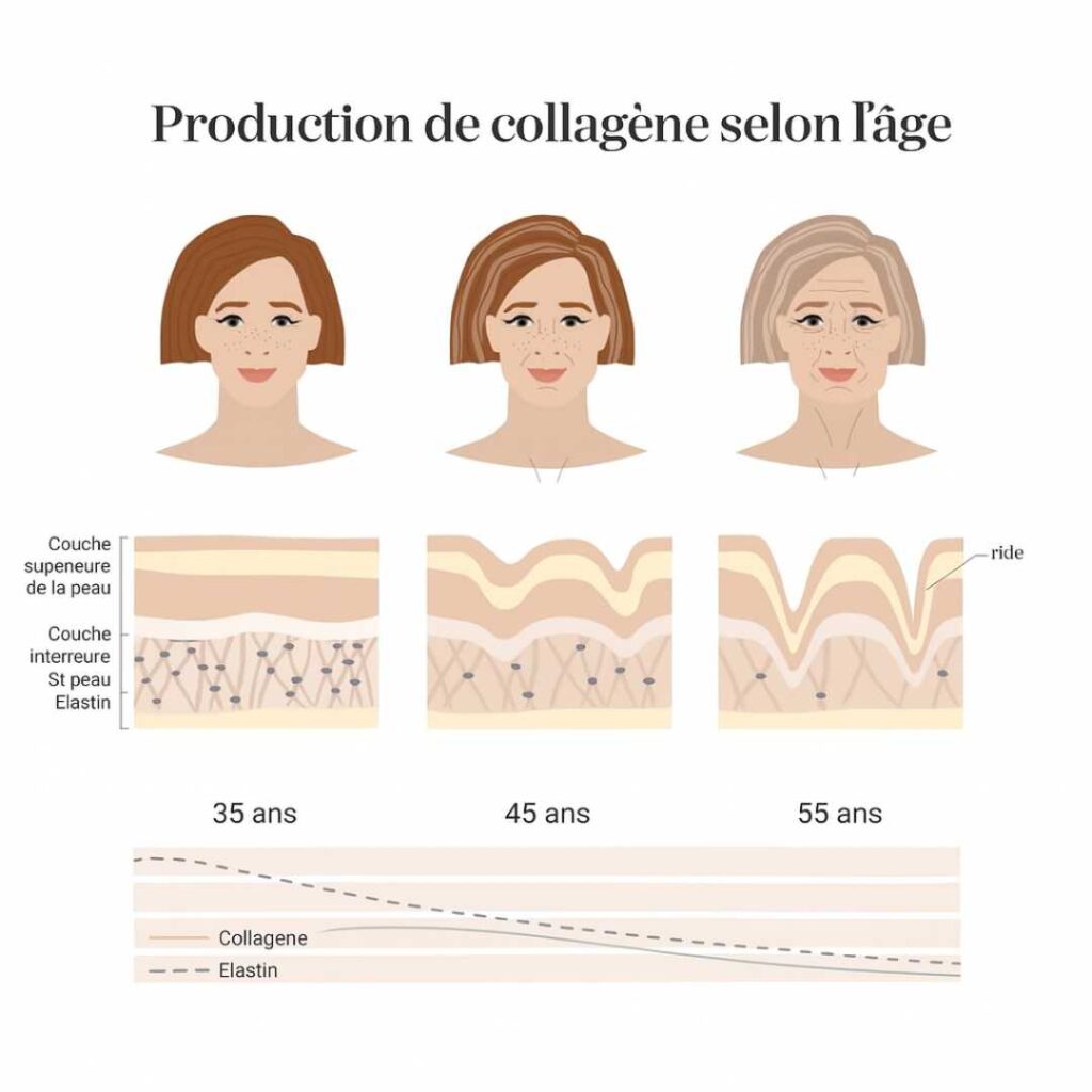 Le collagène structure et soutient notre peau, cheveux, ongles et articulations. À partir de 25 ans, l’organisme en produit de moins en moins. À la mi‑trentaine, les réserves peuvent être réduites de moitié.